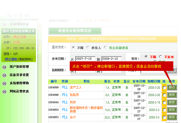 請(qǐng)問(wèn)怎樣讓我發(fā)布的招聘信息一直顯示在招聘信息的第一頁(yè)?